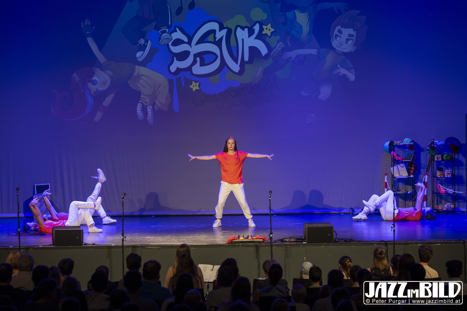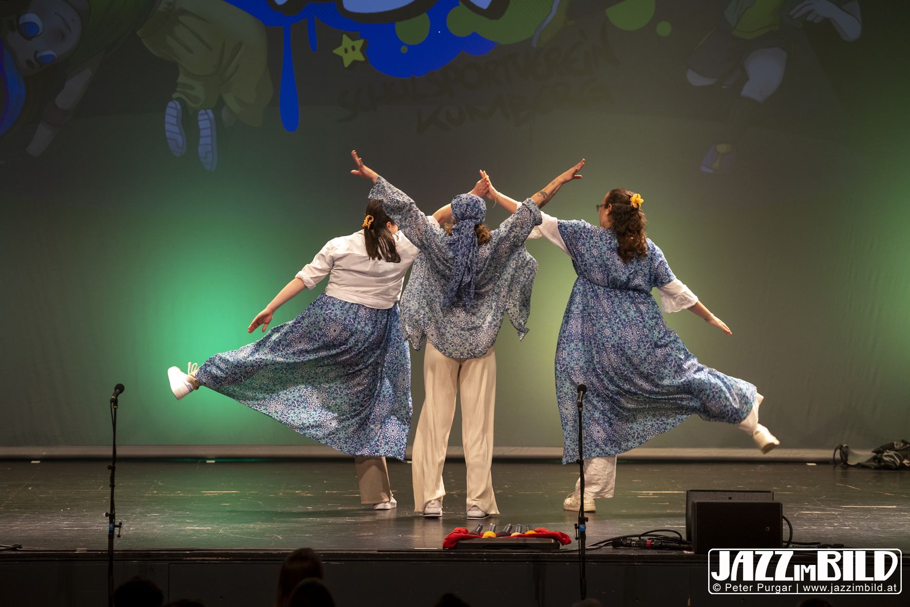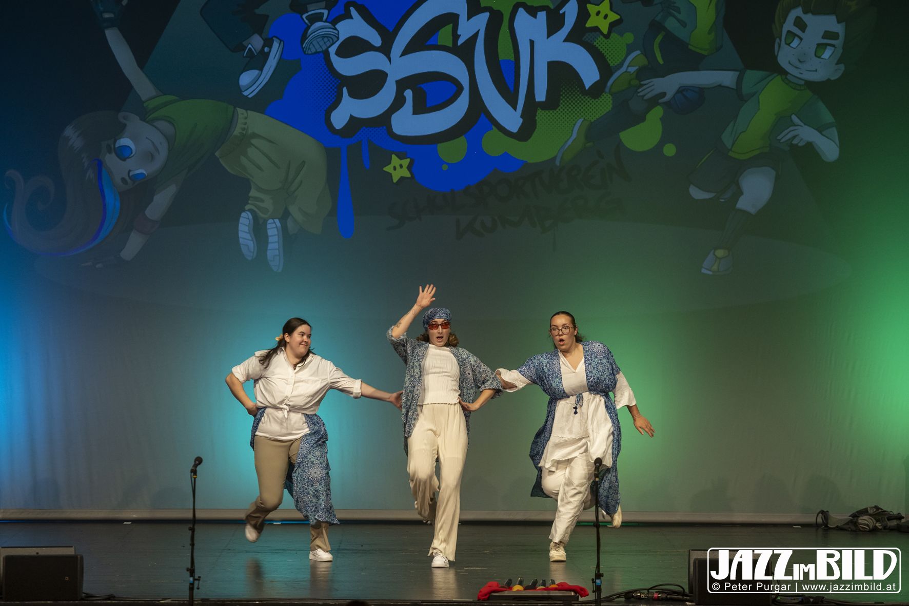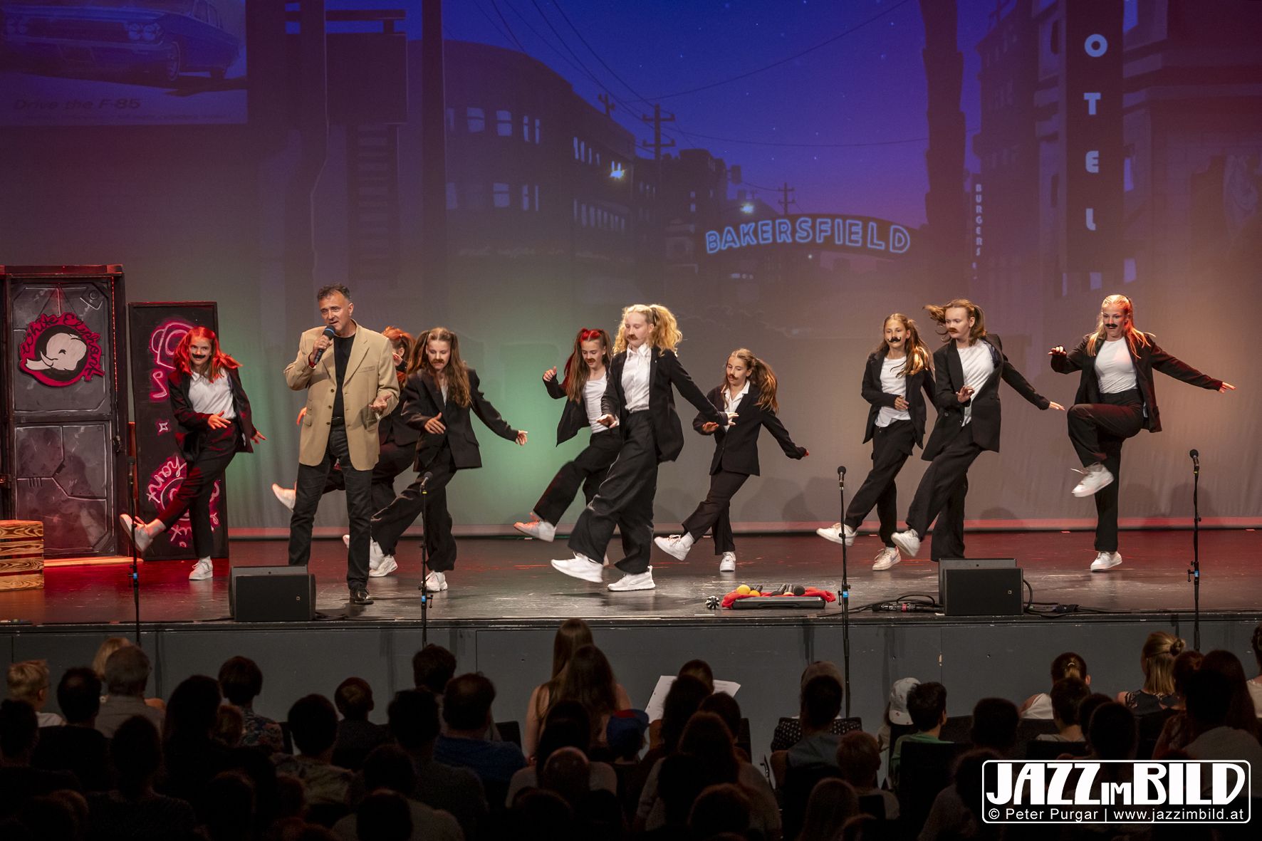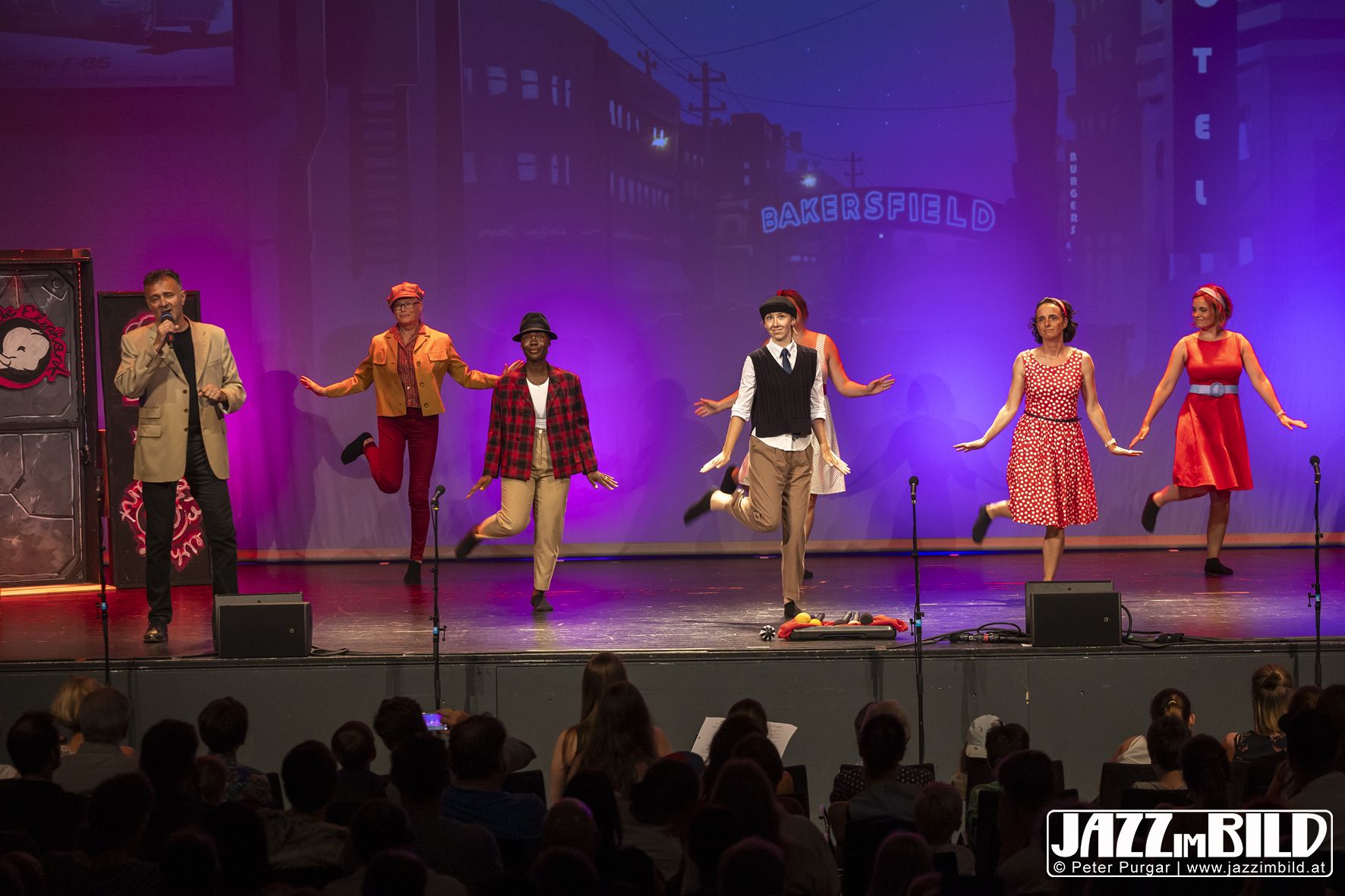 Die Choreografien machten die Zeitreise sichtbar und spürbar. Die Tänze fügten sich nahtlos ins Stück ein und machten den Bunten Abend mit großer Energie und starken Moves zu einem lebendigen Gesamtkunstwerk aus Bewegung, Fantasie und Gemeinschaft. Fotos: Peter Purgar, JAZZimBild